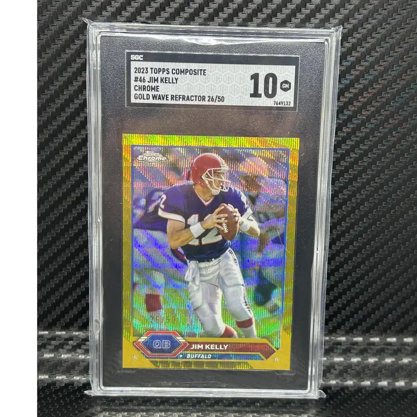 2023 Topps Composite Topps Chrome Jim Kelly Gold Wave 26/50 Buffalo Bills SGC 10