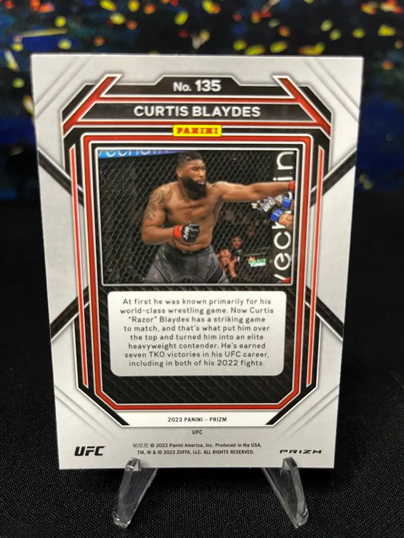 Dominate the collectible cage with this Curtis Blaydes Prizm Silver card. A shining addition for any UFC aficionado looking to bolster their Heavyweight collection!