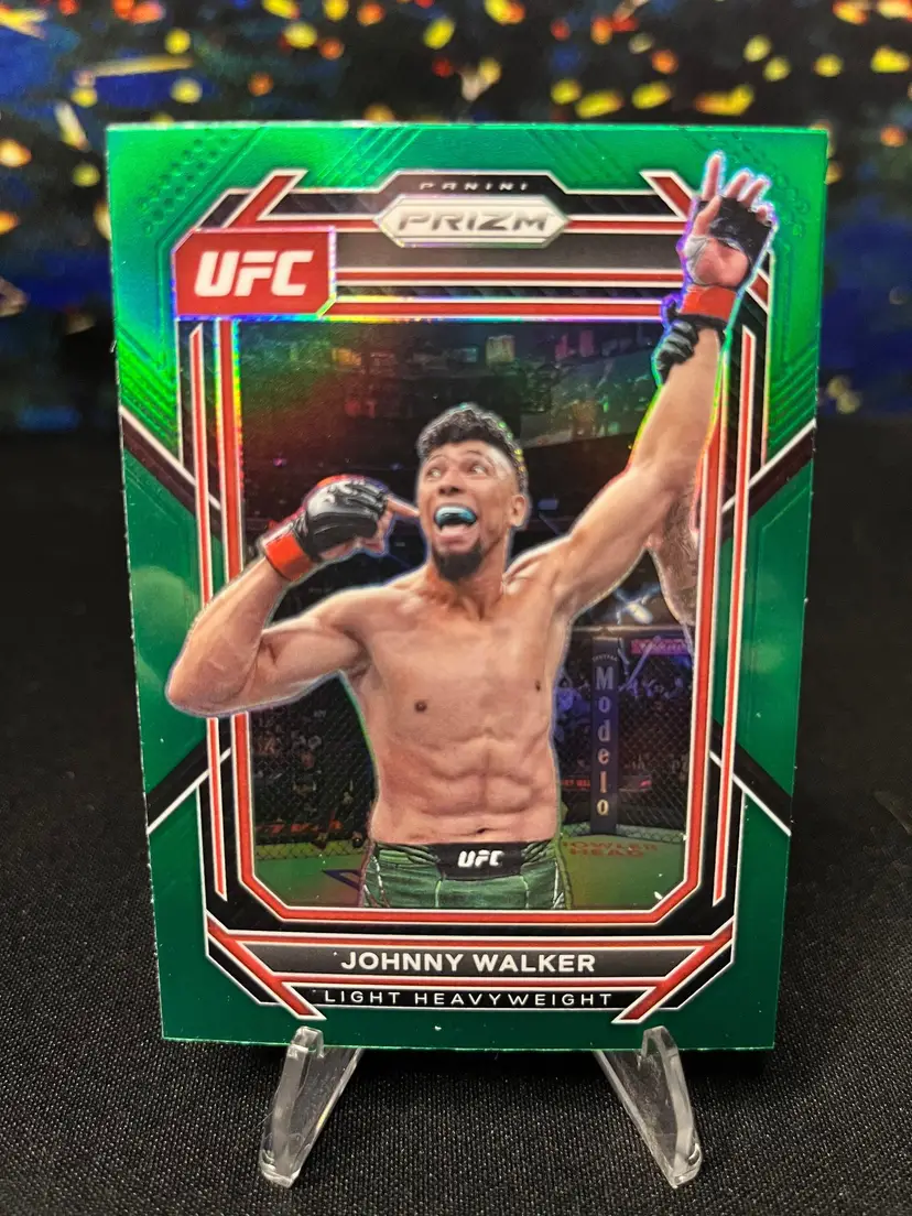 Elevate your UFC collection with this dynamic Johnny Walker Prizm Green card. A vibrant addition for fans of the Light Heavyweight fighter's electrifying performances!