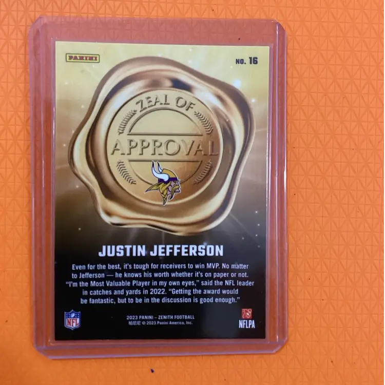 2023 Zenith Football Zeal Of Approval Justin Jefferson #16 Red Mosaic Vikings