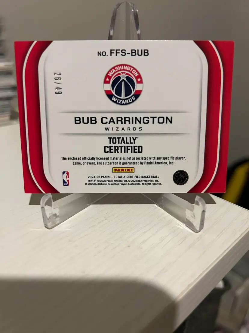 2024-25 Panini Totally Certified Bub Carrington Freshman Fabrics /49 #FFS-BUB