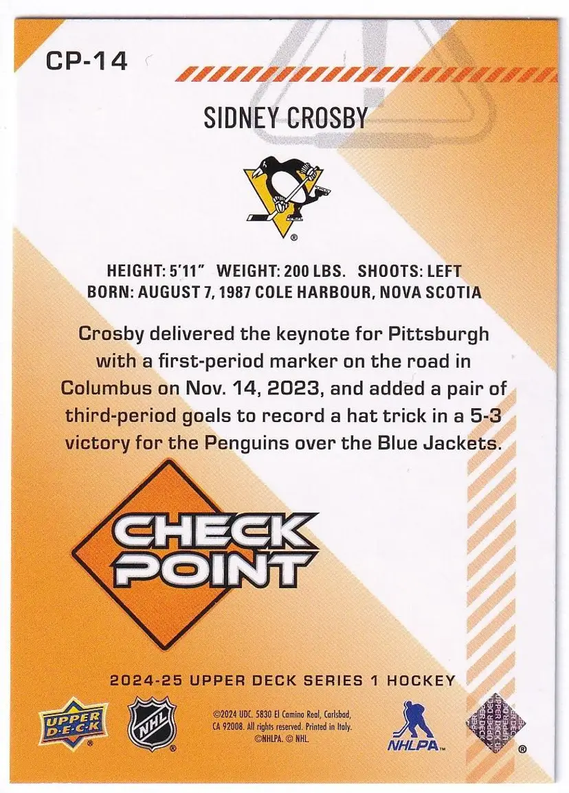 2024-25 Upper Deck Checkpoint #CP14 Sidney Crosby Pittsburgh Penguins