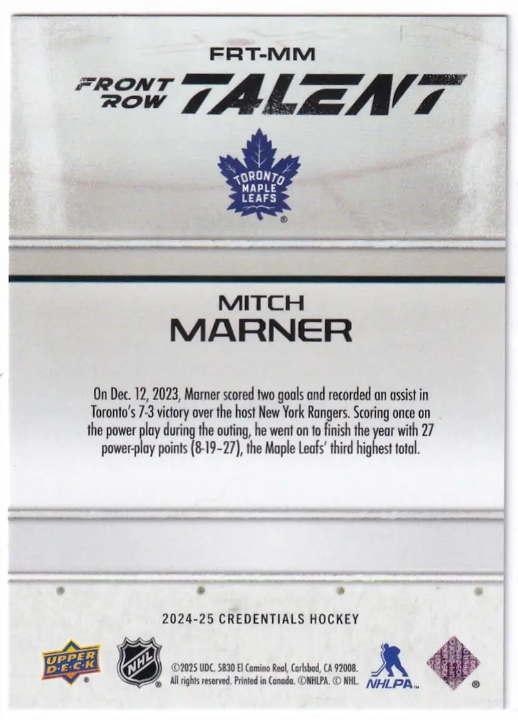 2024-25 Upper Deck Credentials Front Row Talent #FRTMM Mitch Marner Toronto Maple Leafs