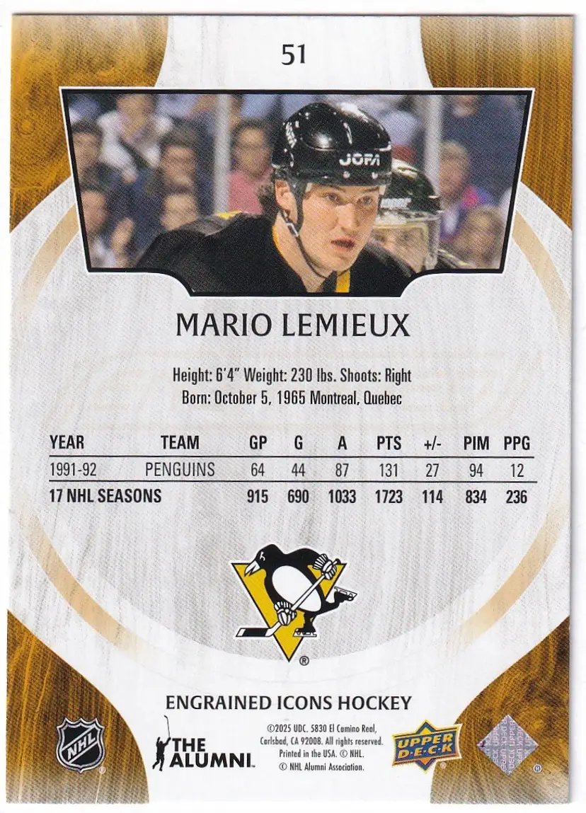 2024-25 Upper Deck Engrained Icons #51 Mario Lemieux Pittsburgh Penguins