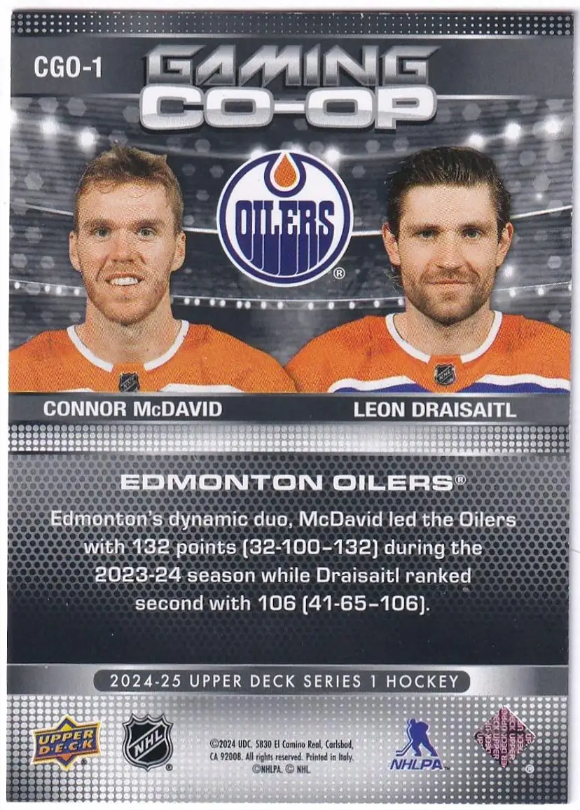 2024-25 Upper Deck Gaming Co-Op #CGO1 Connor McDavid / Leon Draisaitl Edmonton Oilers