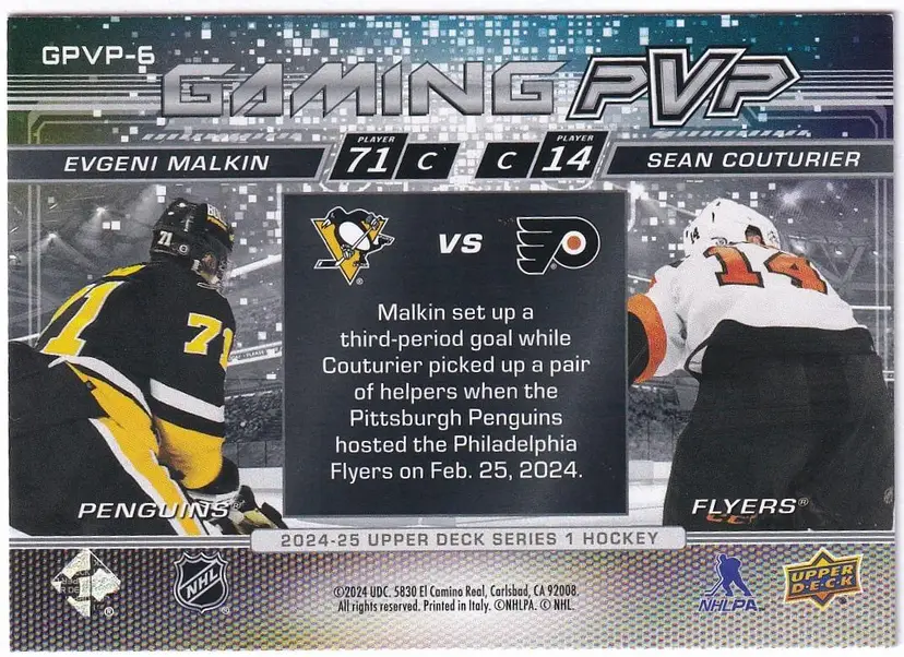 2024-25 Upper Deck Gaming PVP #GPVP6 Evgeni Malkin / Sean Couturier Pittsburgh Penguins Philadelphia Flyers