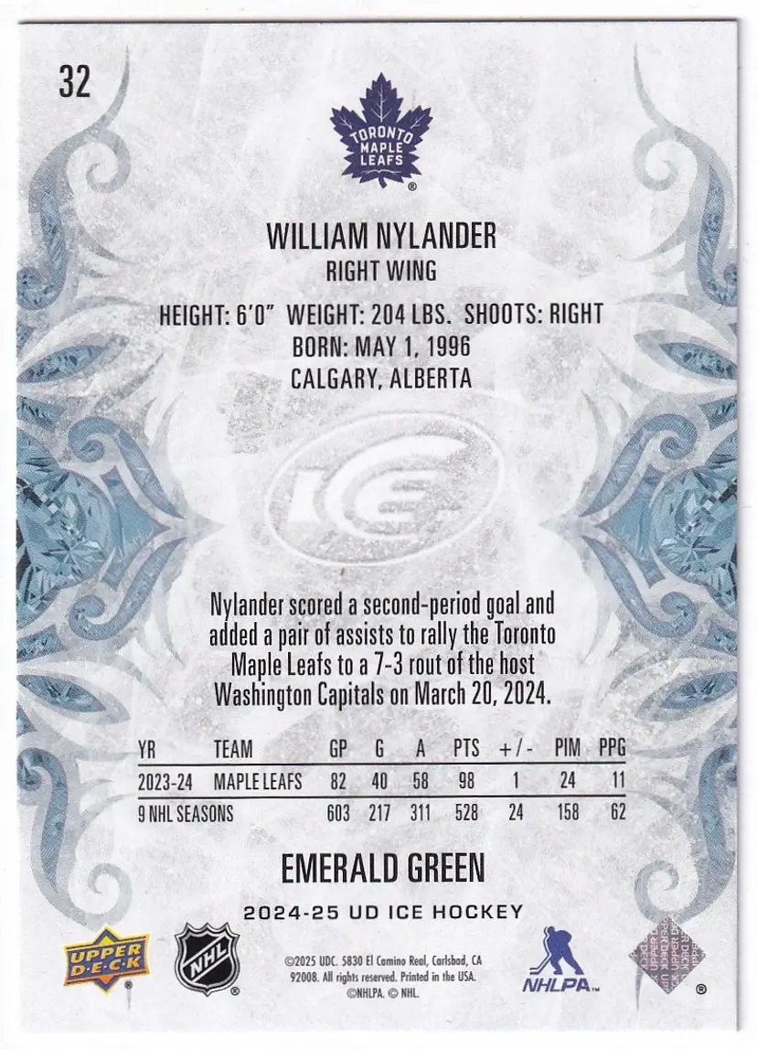 2024-25 Upper Deck Ice Emerald Green #32 William Nylander Toronto Maple Leafs