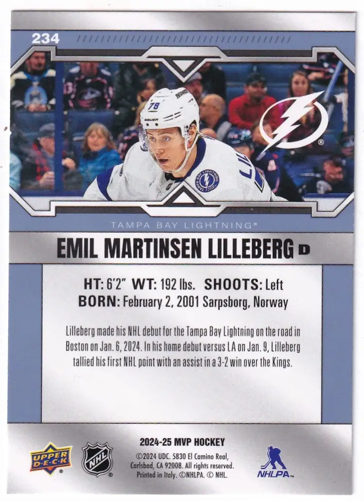 2024-25 Upper Deck MVP #234 Emil Lilleberg SP RC Tampa Bay Lightning