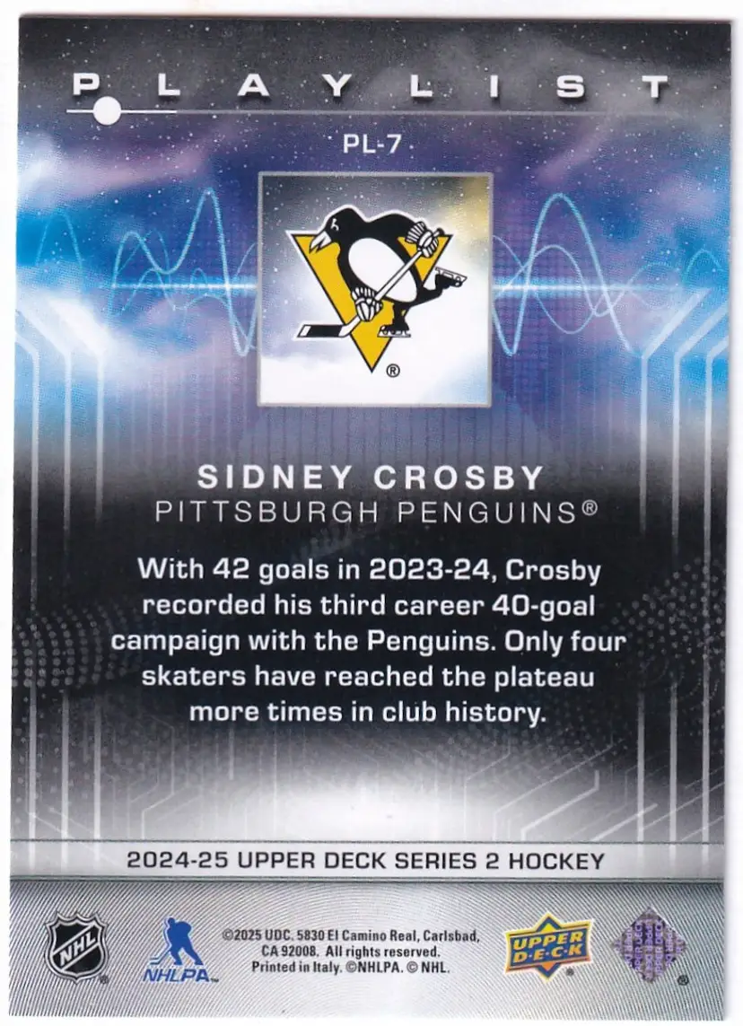 2024-25 Upper Deck Playlist #PL7 Sidney Crosby Pittsburgh Penguins
