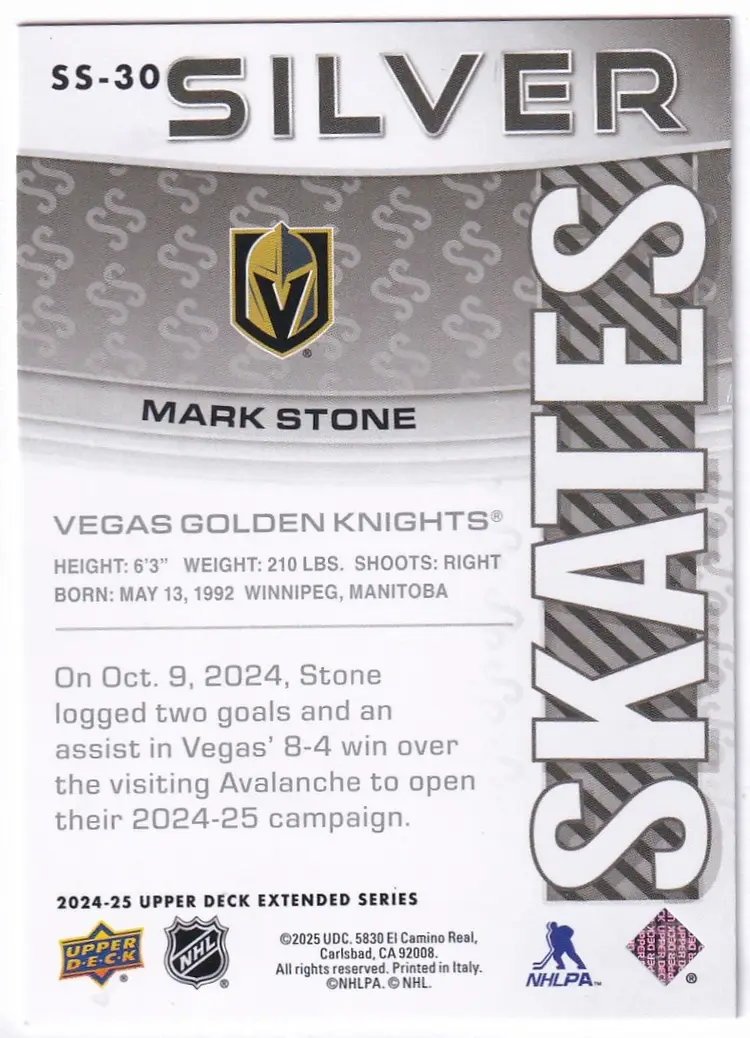 2024-25 Upper Deck Silver Skates #SS30 Mark Stone Vegas Golden Knights