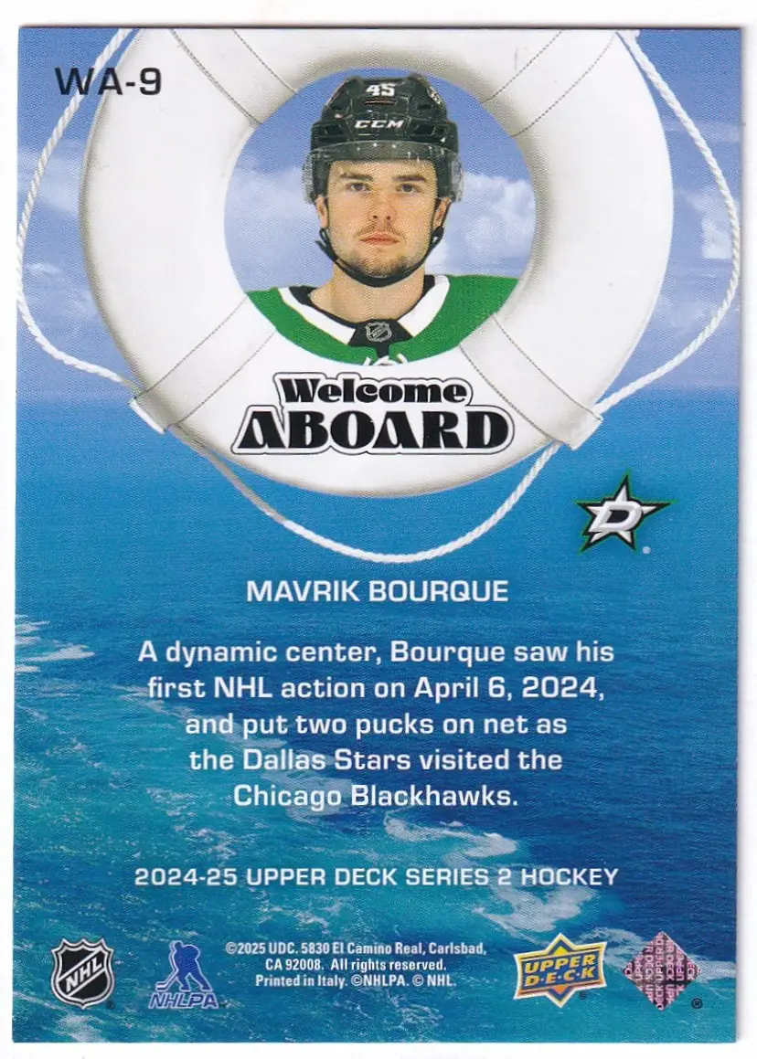 2024-25 Upper Deck Welcome Aboard #WA9 Mavrik Bourque Dallas Stars