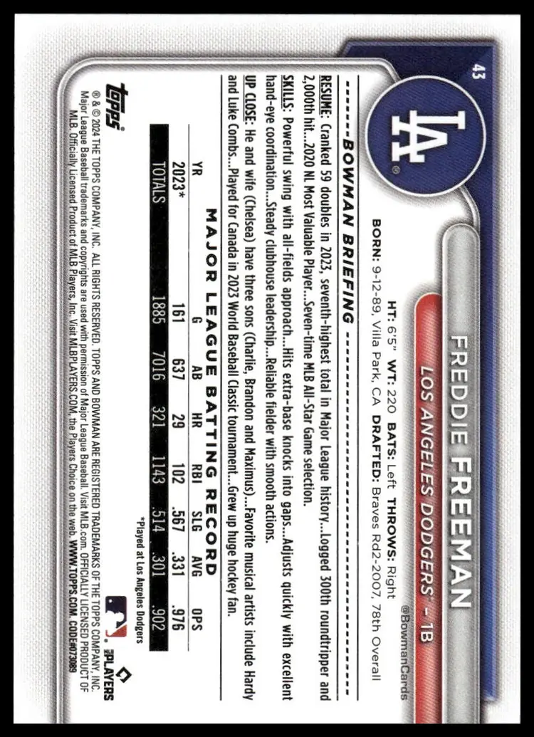 2024 Bowman #43 Freddie Freeman Los Angeles Dodgers