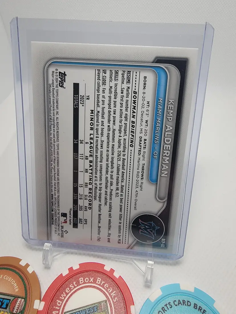 2024 Bowman Chrome Kemp Alderman 182/199 Fuchsia Refractor #BCP-82 Marlins