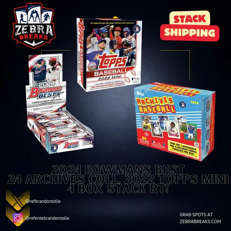 STACK SHIPPING APPLIES All cards stack, you can request shipping by purchasing the "Stack Shipping Request" Item in the marketplace for Zebra Breaks specifically. Stack shipping is a $5 flat fee no matter how large your stack is. Shipping will occur the Friday/Saturday following your request if placed by Thursday night of the week you request shipping
