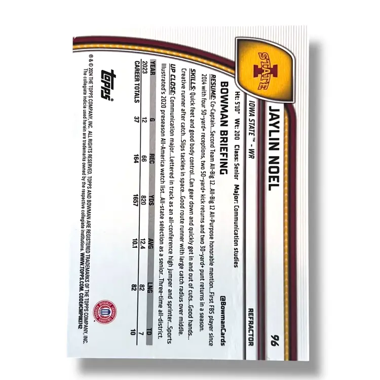 Here We Have a 2024 Bowman University Chrome Jaylin Noel 1st Bowman Refractor #96