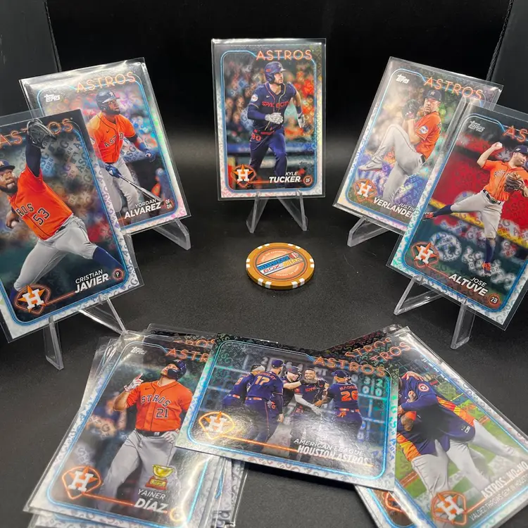 This is the Houston Astros complete team set from the new topps AllStar game complete set. Tough to find set currently. Every single card has a Logofractor foil full-card stamp. Very cool cards in-hand.