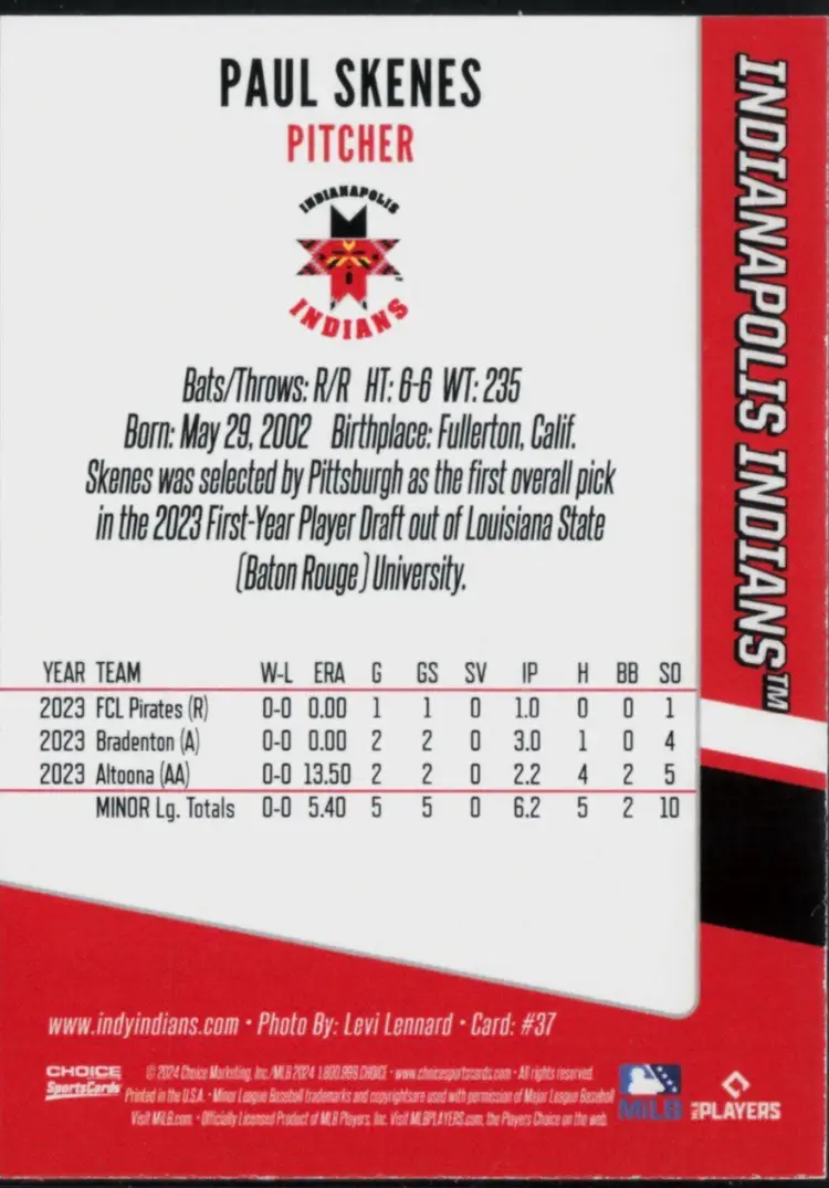 2024 Indianapolis Indians SEALED TEAM SET! INCLUDES Paul Skenes! 2024 Rookie of the Year ! 2025 Cy Young AWARD WINNER? 40 CARD SET! ALSO INCLUDES BREWERS BREAKOUT STAR QUIN PRIESTER! Free shipping and handling! Manufactured by Choice.