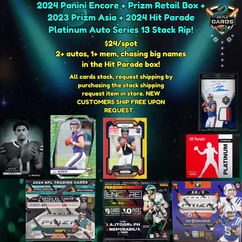 - All cards stack. - Request shipping by purchasing the stack shipping request item in store. - New customers ship free upon request.