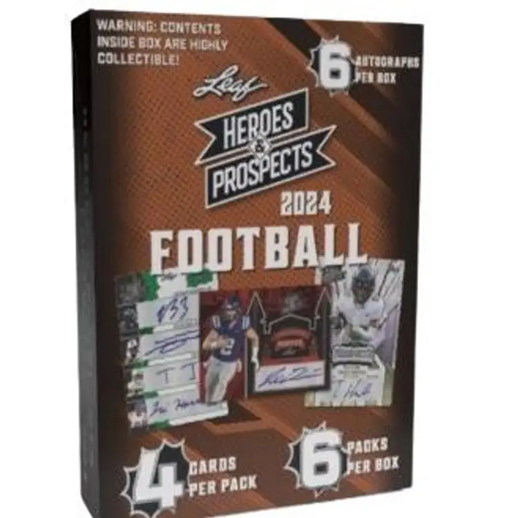 1 Box - 6 Autos! Configuration 3 Base and 1 Autograph per Pack | 6 Packs per Hobby Box | 12 Packs per Jumbo Box Leaf Heroes and Prospects will include a Base Set consisting of over 200 Heroes, Prospects and Dual Heroes & Prospect cards! Each card in the Autograph set will be numbered to 199 or less! Look for a wide array of Autograph Inserts all limited to 25 or less featuring top Draft Picks, collegiate stars, and NIL prospects! Find incredible multi-player insert sets including Duals, Triples, Quads and 8 Player autographs! All multi autographs are #’d to 10 or less!