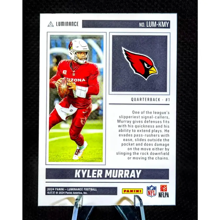 Check out this stunning 2024 Panini Luminance Luminosity Case Hit featuring Kyler Murray of the Arizona Cardinals. A must-have for any football card collector!