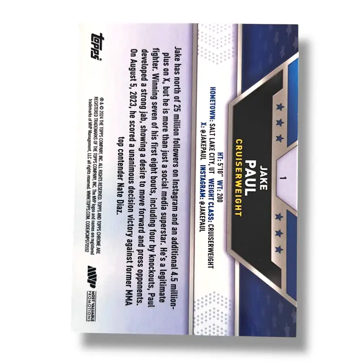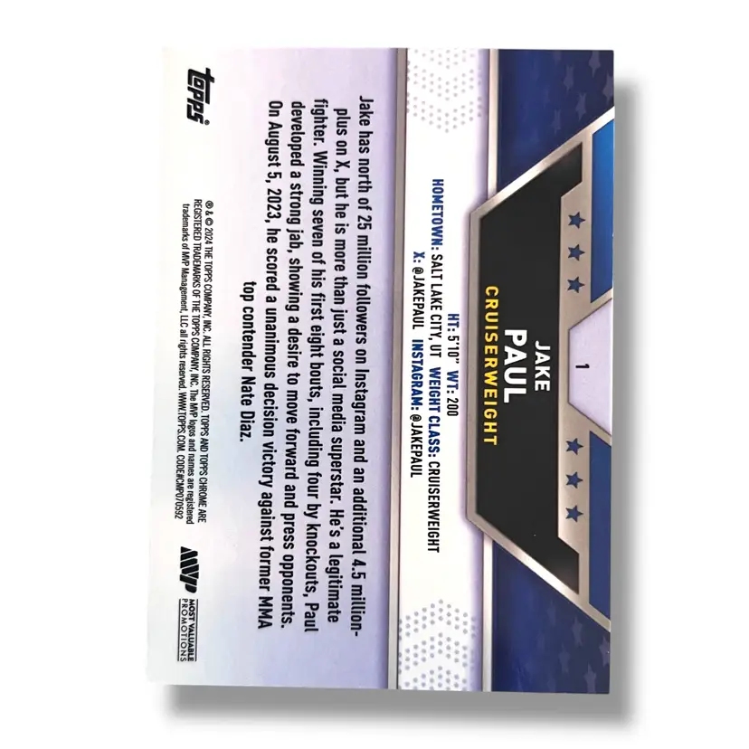 Here We Have a 2024 Topps Chrome Boxing Jake Paul RC #1