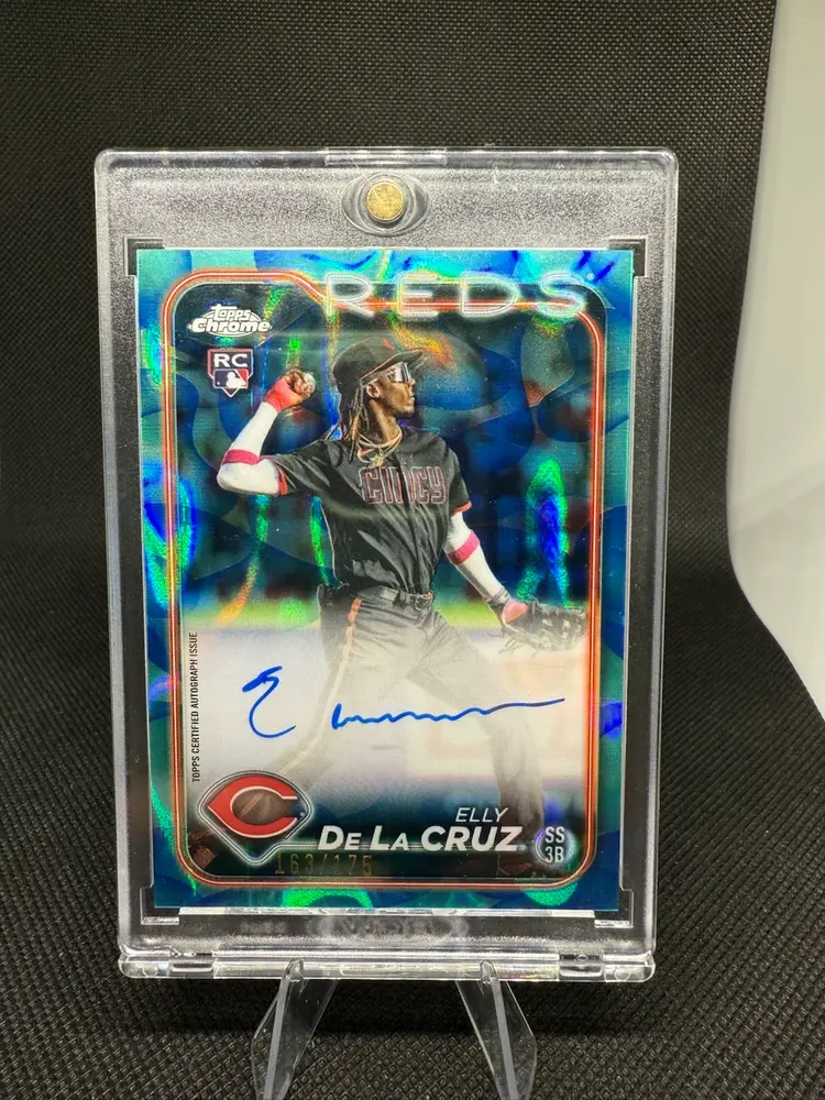 Very clean, dual listed. 2024 Topps chrome update Elly de la Cruz AU RC Aqua lava /175 Cincinnati Reds