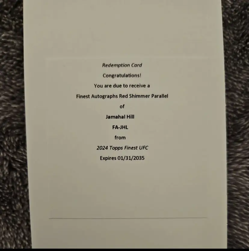 2024 TOPPS FINEST UFC JAMAHAL HILL FINEST AUTO RED SHIMMER PARALLEL REDEMPTION