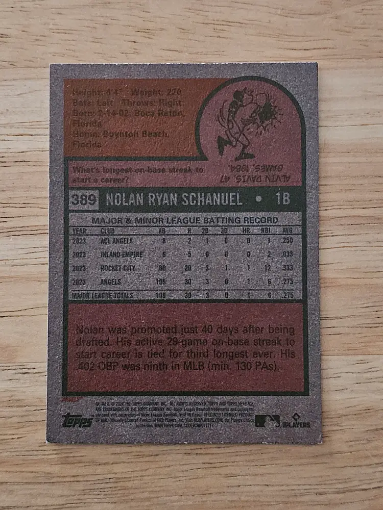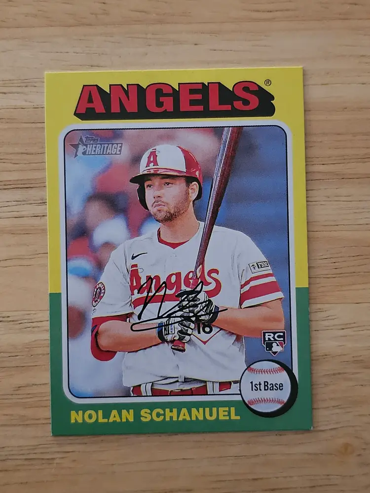 2024 Topps Heritage Baseball Rookie RC Nolan Schanuel Los Angeles Angels Card #389.