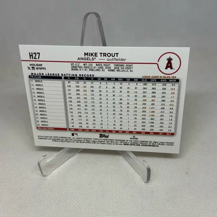 2024 Topps Holiday Mike Trout Santa Hat Parallel SP #H27 Angels