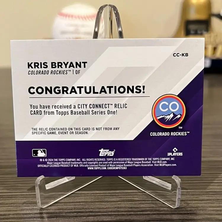 2024 Topps Series 1 Kris Bryant Game Used City Connect Jersey Card No. CC-KB Colorado Rockies