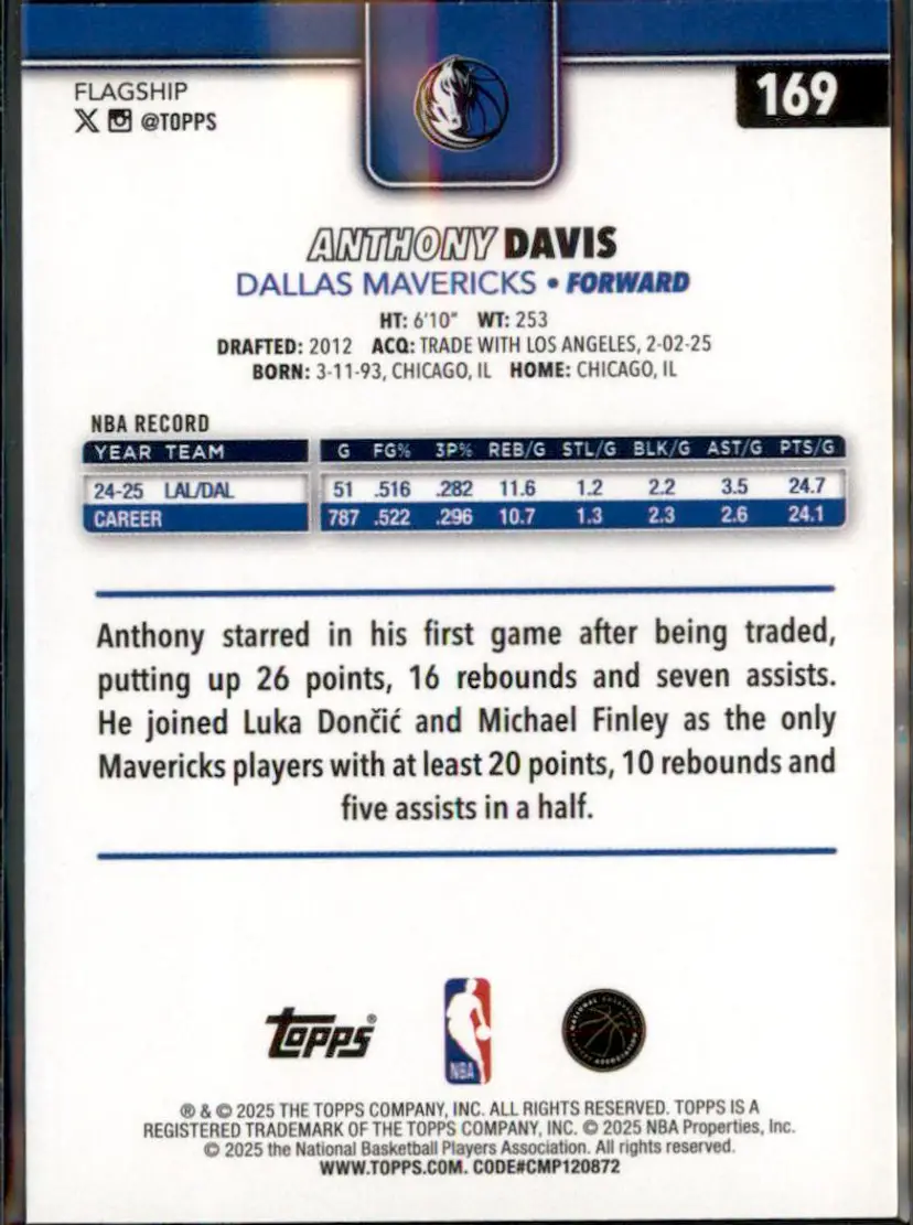 2025-26 Topps #169 Anthony Davis - (135) - Dallas Mavericks