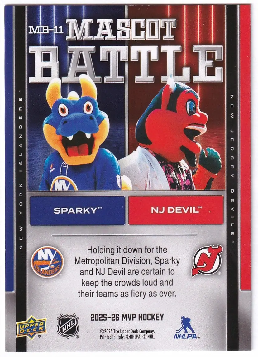 2025-26 Upper Deck MVP Mascot Battle #MB11 Sparky The Dragon / N.J. Devil New York Islanders New Jersey Devils