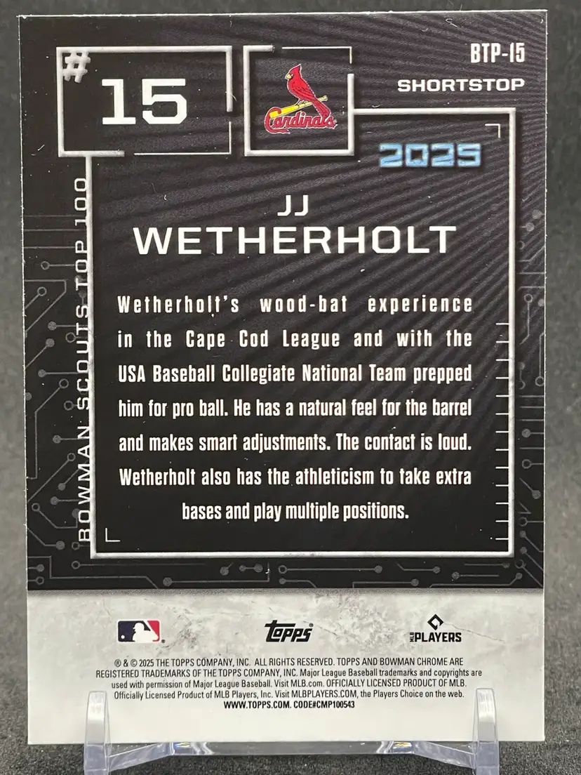 Item Description: 2025 Bowman - Bowman Scouts Top 100 Chrome JJ Wetherholt #BTP-15