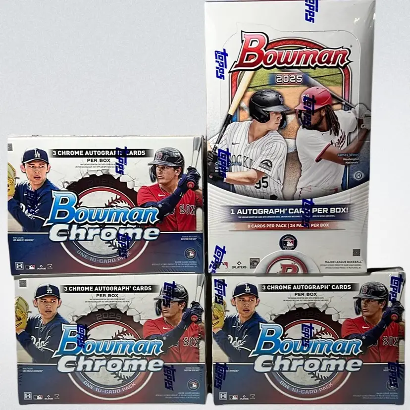 This team in a 4 box live rip. (3) 2025 Bowman Chrome Brkrs Delight and (1) 2025 Bowman Hobby (earlier paper product) ALL CARDS SHIP.