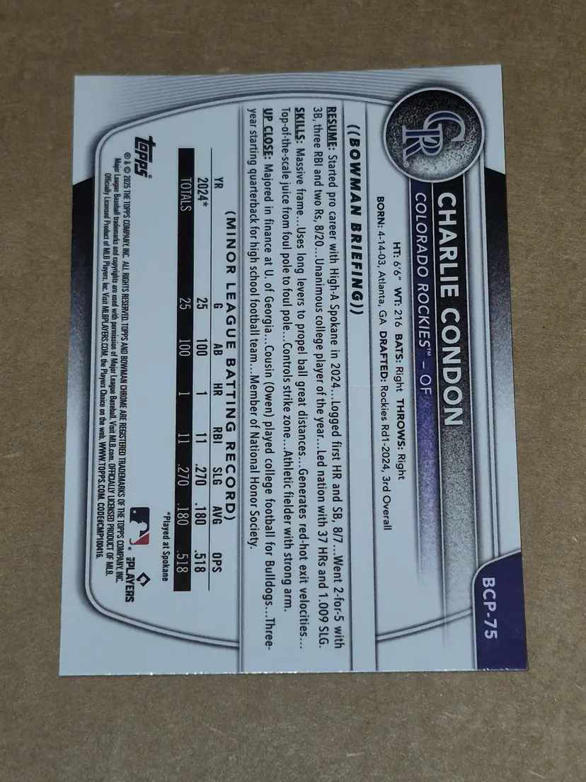 Beautiful card of one of the Rockies best prospects! Card is in NM-MT condition. Card is numbered 13/150.