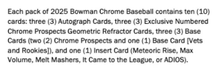10 Cards each Breakers Delight box. 3 autos 3 exclusive numbered ref 1 insert plus 3 more cards . This is for a personal break on youtube. If buying before release, this should break release day morning starting around 9am. . All cards ship.