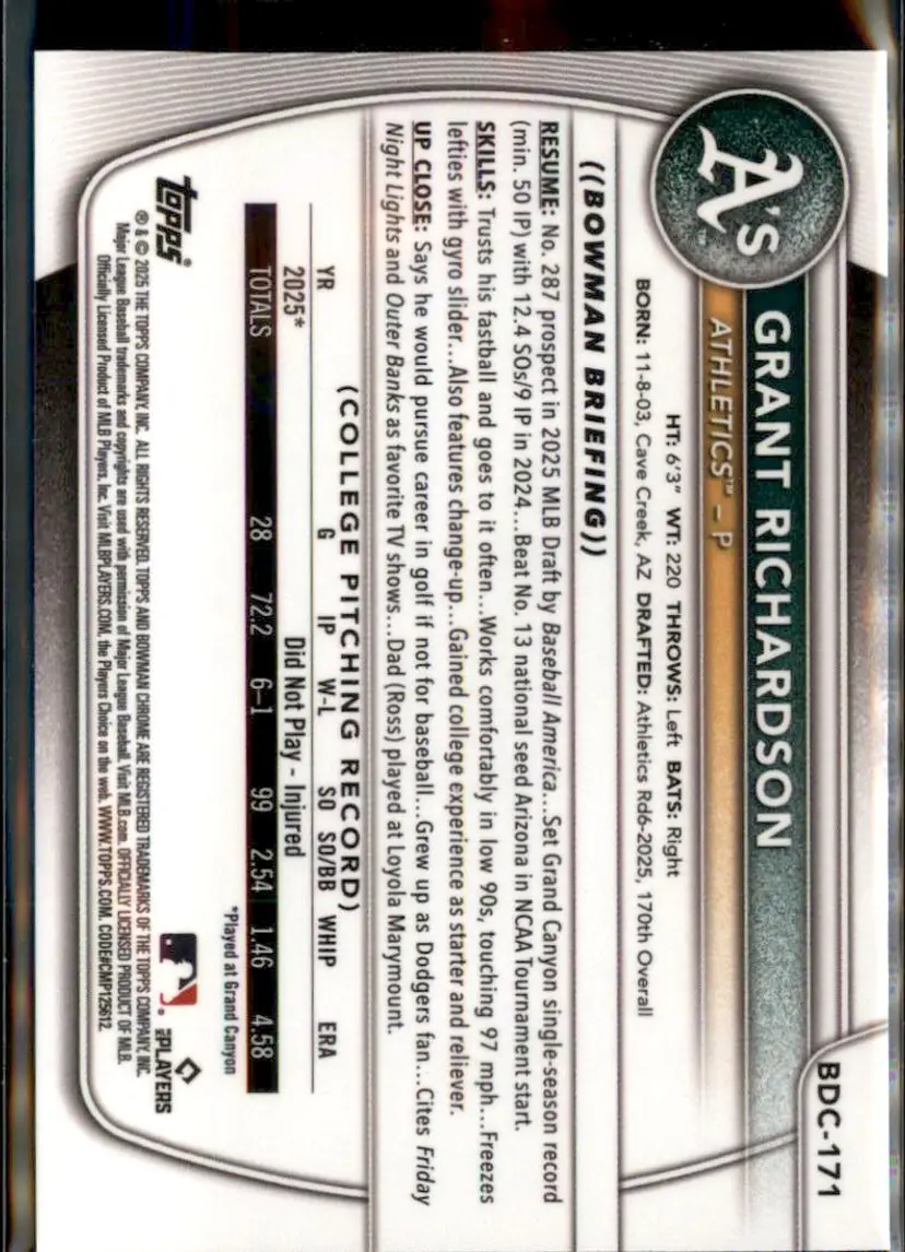2025 Bowman Draft #BDC-171 Grant Richardson Chrome - (138) - Athletics