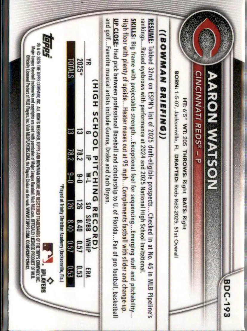 2025 Bowman Draft #BDC-193 Aaron Watson Chrome - (138) - Cincinnati Reds