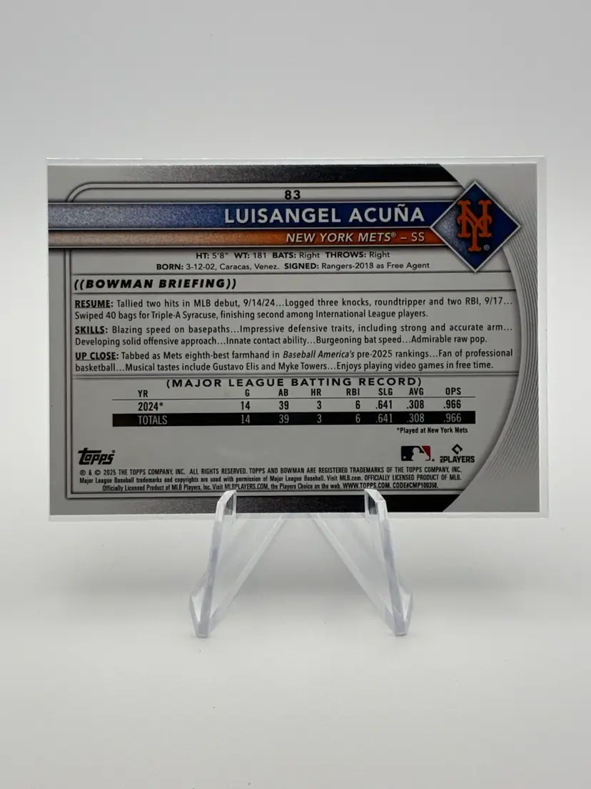 This listing is for Luisangel Acuna’s rookie card from 2025 Bowman Baseball