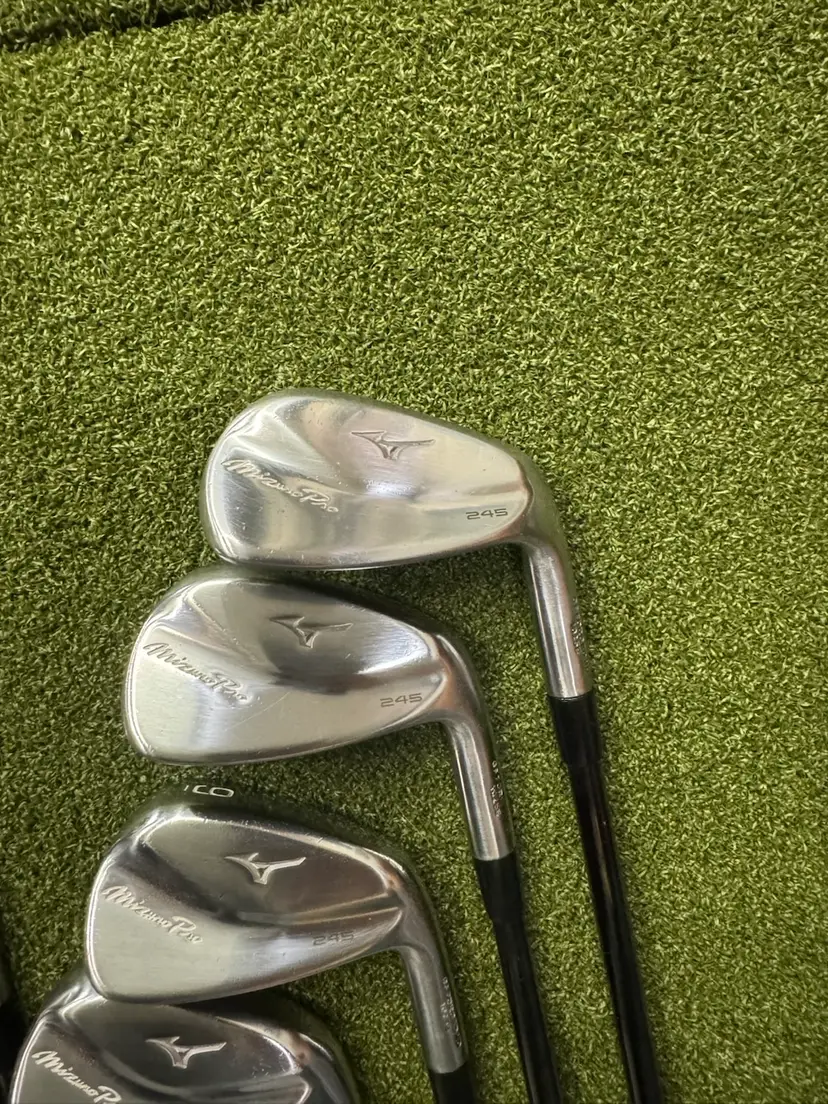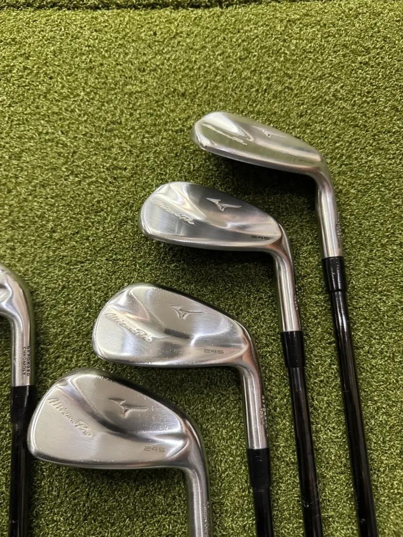 Gently used, some bag chatter, 245 pros. Fresh set of PVD BLACK KBS $ taper 115 stiff flex installed by club builder. Expensive…brand new gold pride tour velvet. 7 iron length 37.375” stand loft and lie.