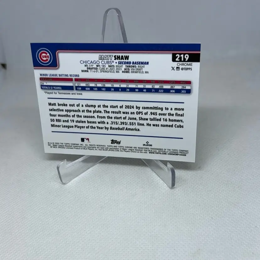 2025 Topps Chrome #219 Matt Shaw Rookie Chicago Cubs