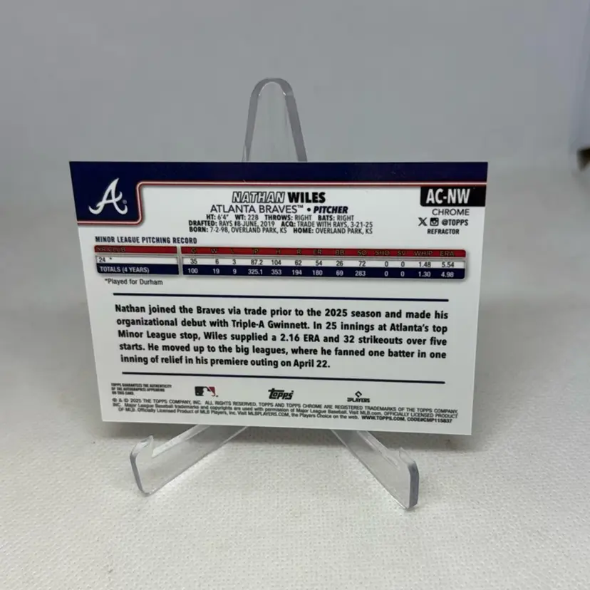 2025 TOPPS CHROME UPDATE BASEBALL AUTO REFRACTOR 106/499 RC NATHAN WILES