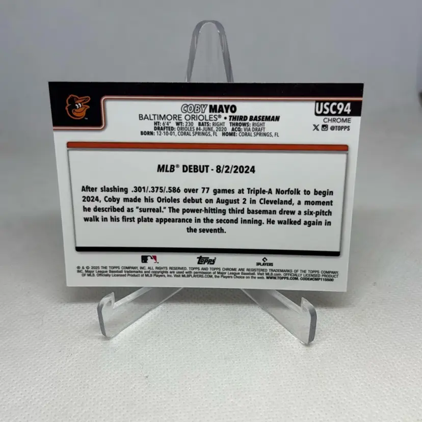 2025 Topps Chrome Update Coby Mayo RC Sepia Refractor #USC94 Orioles