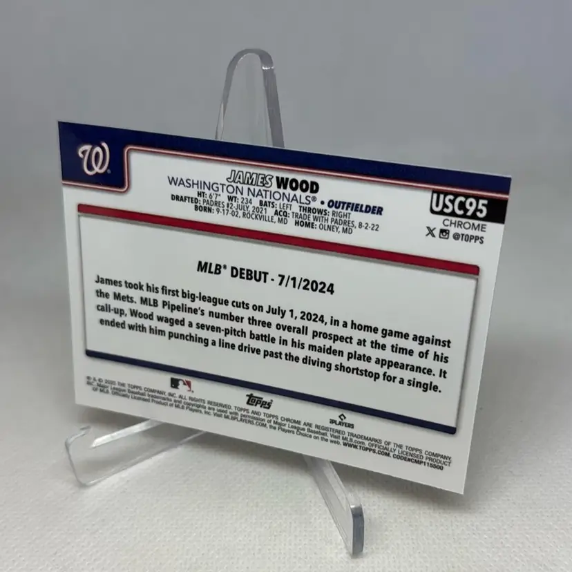 2025 Topps Chrome Update Series James Wood Rookie Debut RC #USC95 - Nationals