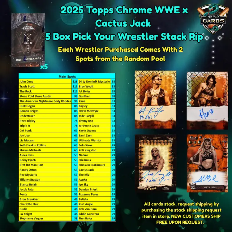 - All cards stack. - Request shipping by purchasing the stack shipping request item in store. - New customers ship free upon request.
