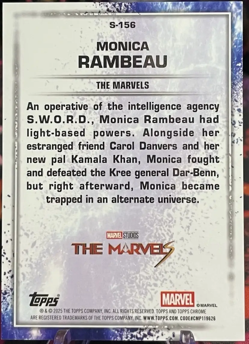 2025 Topps Marvel Studios Chrome Monica Rambeau /25 Orange Refractor #S-156
