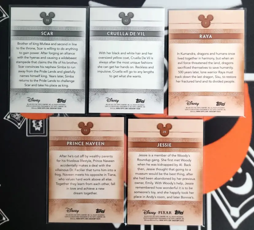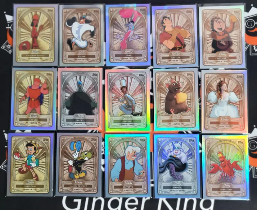 This listing is for a lot of 20 cards from the 2025 Topps Disney Mint trading card set. A great mix of Bronze, Silver, and Gold tier characters from beloved Disney films.