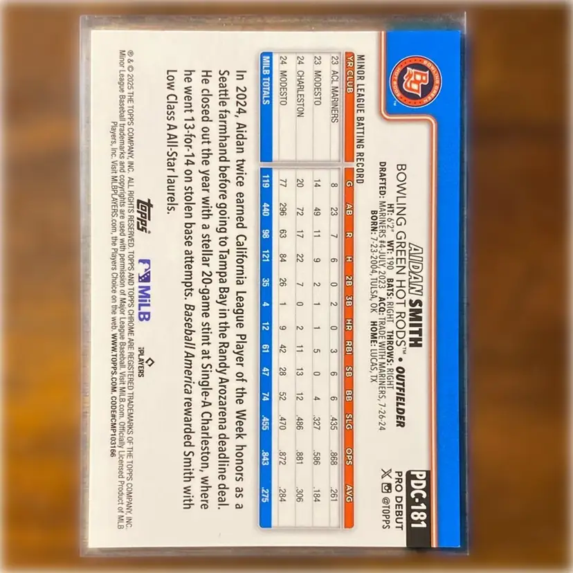2025 Topps Pro Debut Aidan Smith Orange Refractor /25 Rays