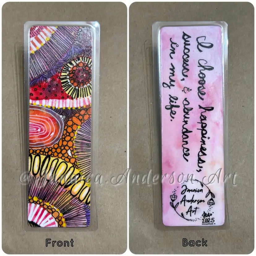 • Abstract bookmark hand painted on both sides. • Original acrylic, or watercolor & mixed media artwork. • Sealed and protected with (2) layers of archival varnish then laminated for long-term enjoyment! • Size is 2.25” wide by 6.25” tall.