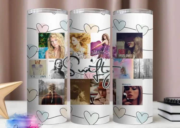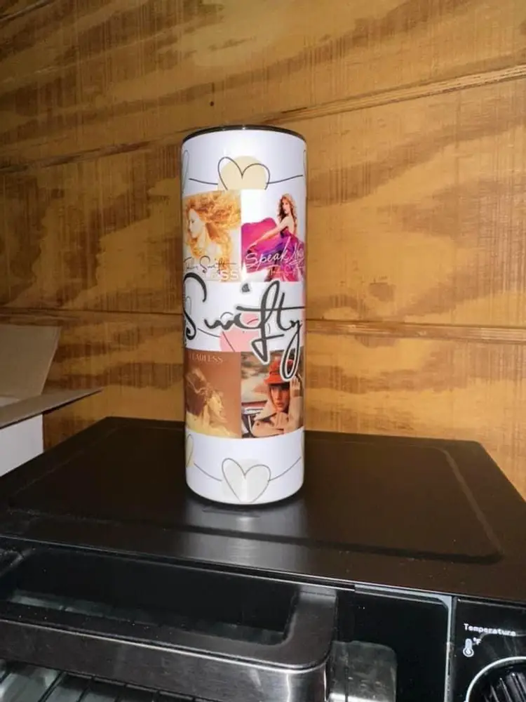Sip in style with our exclusive 20oz tumbler, a must-have for every Swiftie! Adorned with hearts and featuring iconic Taylor Swift album covers, this tumbler is a tribute to the journey of musical magic. Your purchase includes two sleek metal straws, making it the perfect companion for on-the-go moments or cozy nights in. Embrace your Swiftie pride with this eye-catching and practical accessory that combines fandom love with functionality. Cheers to Taylor's timeless tunes and your favorite sips!